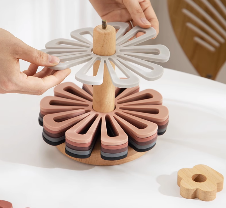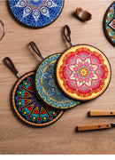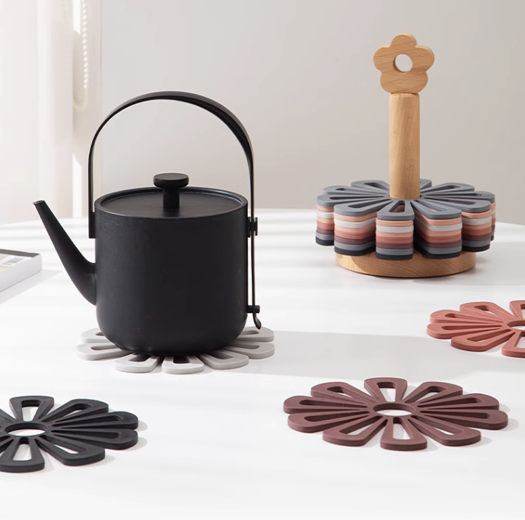Coloured PVC Flowers Placemats With Wooden Stor... Coloured PVC Flowers Placemats With Wooden Storage Stand