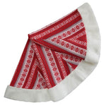 Red Christmas Tree Skirt - Double layer design, red knitted snowflake pattern, faux lambswool outer lining border, soft and delicate.
