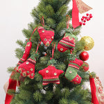 Retro natural khaki imitation burlap tree skirt with a lively red ruffle design, soft and comfortable texture.