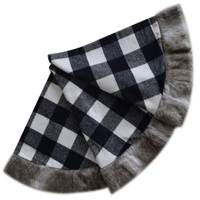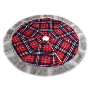 Red and Black Plaid Cotton Christmas Tree Skirt with Grey Short Plush Border Christmas Decorations Red and Black Plaid Cotton Christmas Tree Skirt with Grey Short Plush Border Christmas Decorations