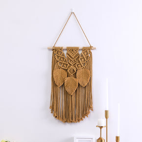 Brown Hand Woven Leaves Ornament Cotton Hanging Rugs Tapestry With Tassel Handwoven For Bedroom Living Room Hall Wall Decor Art Tapestries Brown Hand Woven Leaves Ornament Cotton Hanging Rugs Tapestry With Tassel Handwoven For Bedroom Living Room Hall Wall Decor Art Tapestries