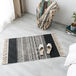 Black Vintage Striped Cotton Area Rug with Tassel Hand Woven Floor Carpet Rug for Living Room Bedroom 60*90cm 04 Black Vintage Striped Cotton Area Rug with Tassel Hand Woven Floor Carpet Rug for Living Room Bedroom 60*90cm 04
