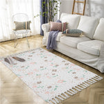 Blue Geometric Pattern Cotton and Linen Area Ru... Blue Geometric Pattern Cotton and Linen Area Rug with Tassel Handwoven Floor Carpet Rug for Living Room Bedroom