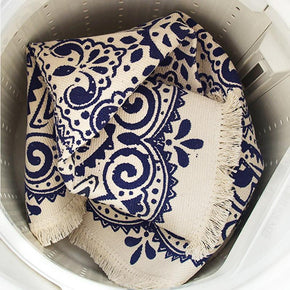 Blue Vintage Printed Pattern Cotton Area Rug with Tassel Hand Woven Machine Washable Floor Carpet Rug for Living Room Bedroom Blue Vintage Printed Pattern Cotton Area Rug with Tassel Hand Woven Machine Washable Floor Carpet Rug for Living Room Bedroom