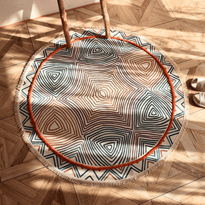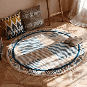 Blue Geometric Round Printed Cotton Area Rug with Tassel Hand Woven Machine Washable Floor Carpet Rug Blue Geometric Round Printed Cotton Area Rug with Tassel Hand Woven Machine Washable Floor Carpet Rug