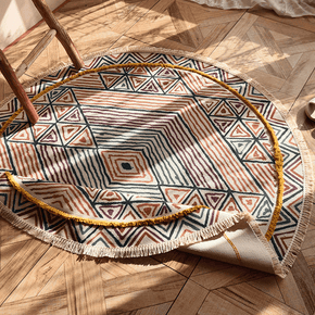 Colorful Stereo Round Moroccan Pattern Cotton Area Rug with Tassel Hand Woven Machine Washable Floor Carpet Rug for Living Room Bedroom Colorful Stereo Round Moroccan Pattern Cotton Area Rug with Tassel Hand Woven Machine Washable Floor Carpet Rug for Living Room Bedroom