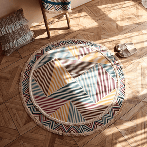 Round Multicolor Triangles Cotton Area Rug with Tassel Hand Woven Machine Washable Floor Carpet Rug for Living Room Bedroom Round Multicolor Triangles Cotton Area Rug with Tassel Hand Woven Machine Washable Floor Carpet Rug for Living Room Bedroom