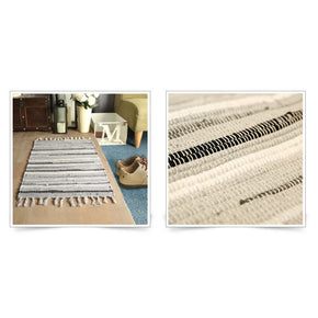 Eco-Friendly Brown Handmade Cotton Striped Carpet With Tassel For Bedroom Bedside Kitchen Living Room Bathroom Absorbent Floor Mat Eco-Friendly Brown Handmade Cotton Striped Carpet With Tassel For Bedroom Bedside Kitchen Living Room Bathroom Absorbent Floor Mat