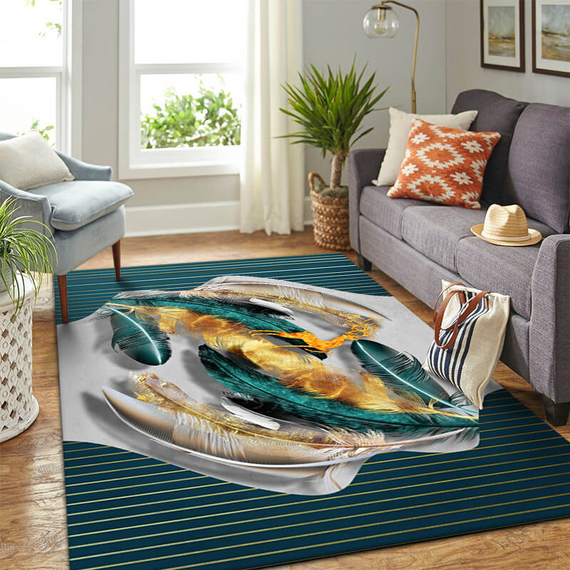 19 Feathers Patterned Modern Area Rugs Polyeste... 19 Feathers Patterned Modern Area Rugs Polyester Carpets for Dining Room Office Bedroom Living Room Hall
