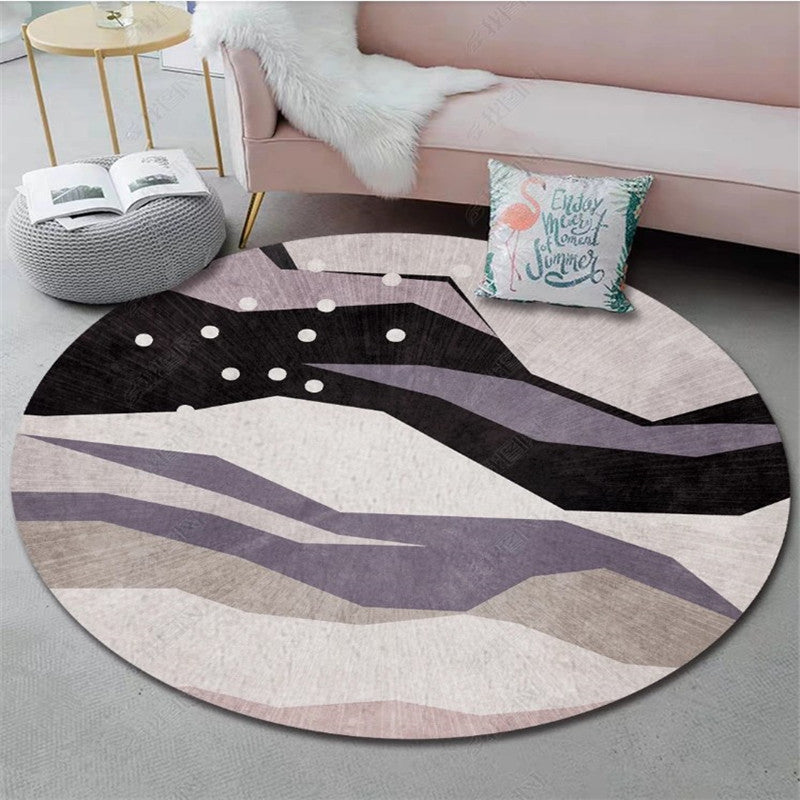 Black And Purple Irregular Lines Pattern Round ... Black And Purple Irregular Lines Pattern Round Modern Rug for Living Room Bedroom Kitchen Hall