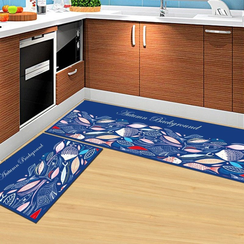 Blue Fish Kitchen Carpet Floor Mats Oil-proof A... Blue Fish Kitchen Carpet Floor Mats Oil-proof Anti-skid Pad Bathroom Toilet Water Absorption Bedroom Mats and Door Mats