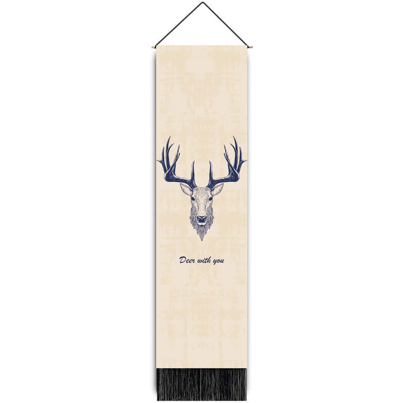 Elk Pattern Beige Wall Hanging Tapestry with Ta... Elk Pattern Beige Wall Hanging Tapestry with Tassels, Cotton Tapestries Wall Art for Bedroom