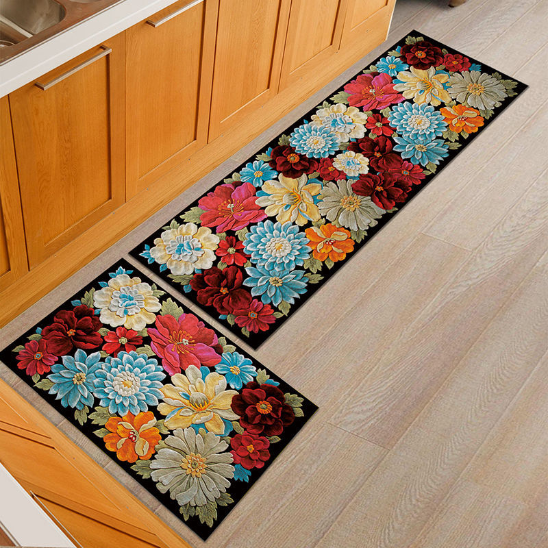 Floral Kitchen Carpet Floor Mats Oil-proof Anti... Floral Kitchen Carpet Floor Mats Oil-proof Anti-skid Pad Bathroom Toilet Water Absorption Bedroom Mats and Door Mats