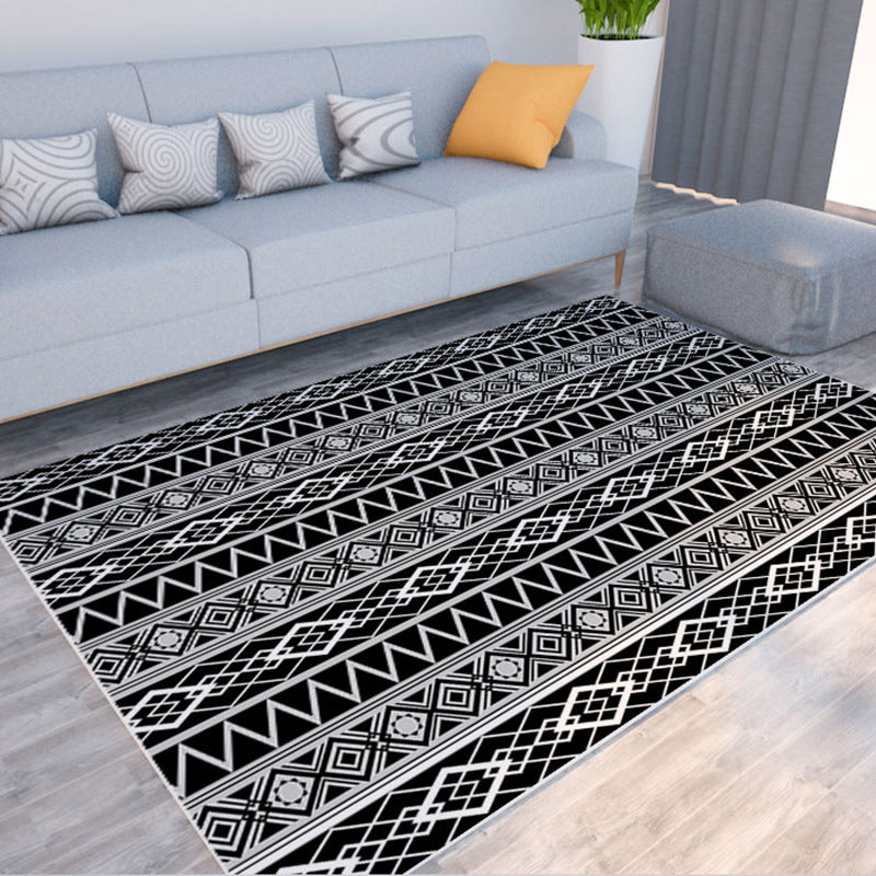 Geometric Modern Simplicity Black Striped Moroc... Geometric Modern Simplicity Black Striped Moroccan 3D Pattern Rug Floor Mat for Bedroom Living Room Sofa Office Hall