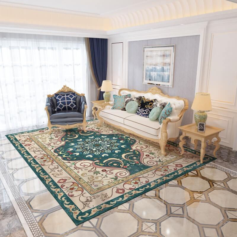 Green Classical Printed Faux Cashmere Shaggy Ru... Green Classical Printed Faux Cashmere Shaggy Rugs For Living Room Bedroom Hall Carpet