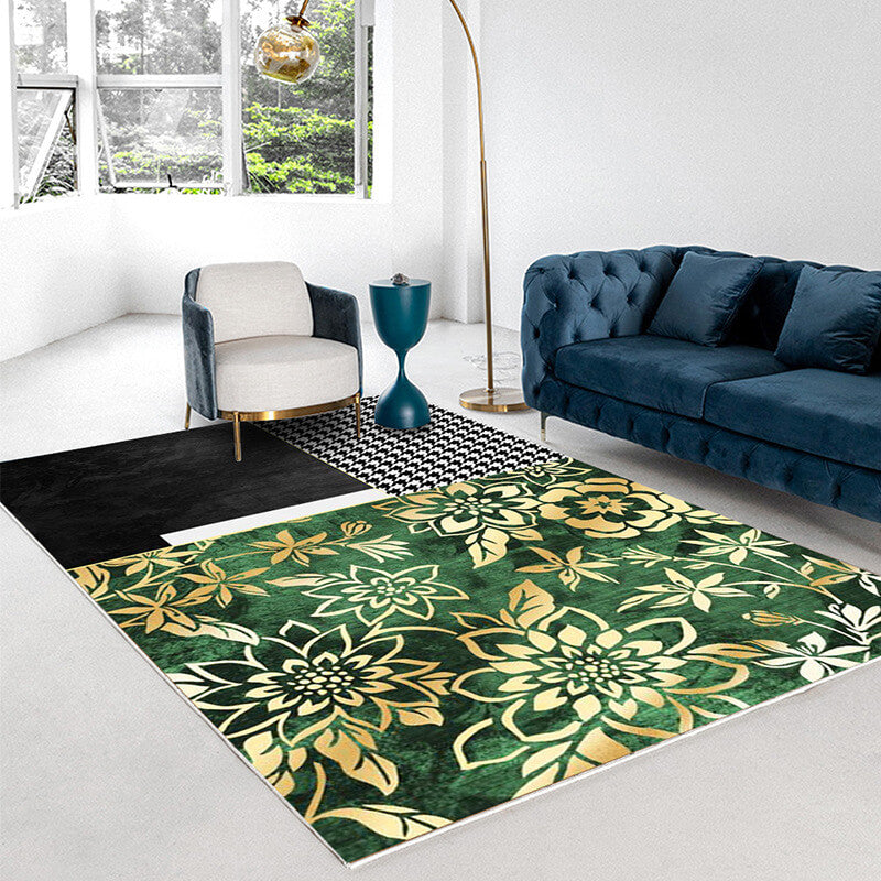 Green Modern Minimalist Flowers Pattern Rugs Fo... Green Modern Minimalist Flowers Pattern Rugs For Living Room Dining Room Bedroom