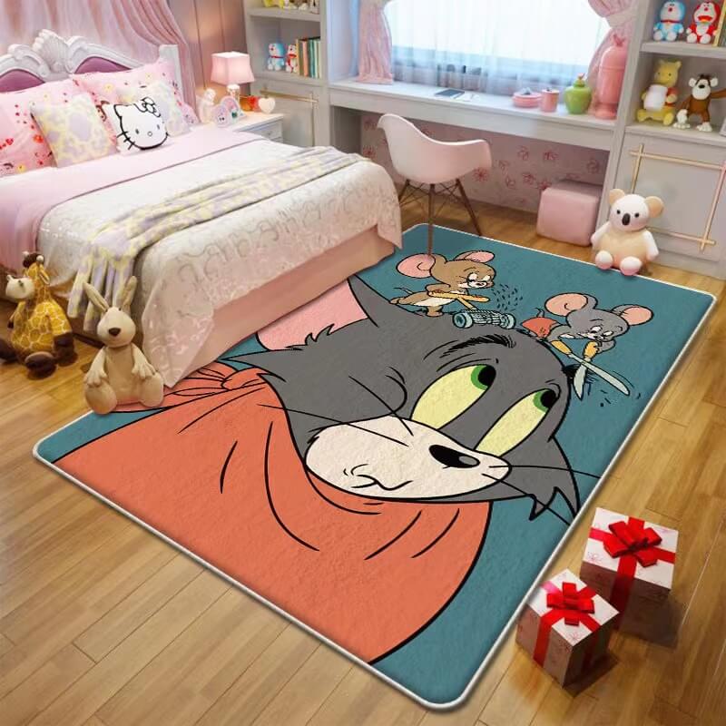 Grey Cats and Two Mouses Pattern Faux Cashmere ... Grey Cats and Two Mouses Pattern Faux Cashmere Shaggy Area Rugs For Kids Room Bedroom Bedside Carpets