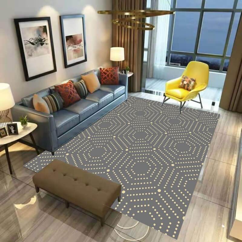 Grey Simple Hexagon Modern Geometry Polyester P... Grey Simple Hexagon Modern Geometry Polyester Patterned Carpets for Hall Dining Room Bedroom Living Room Office
