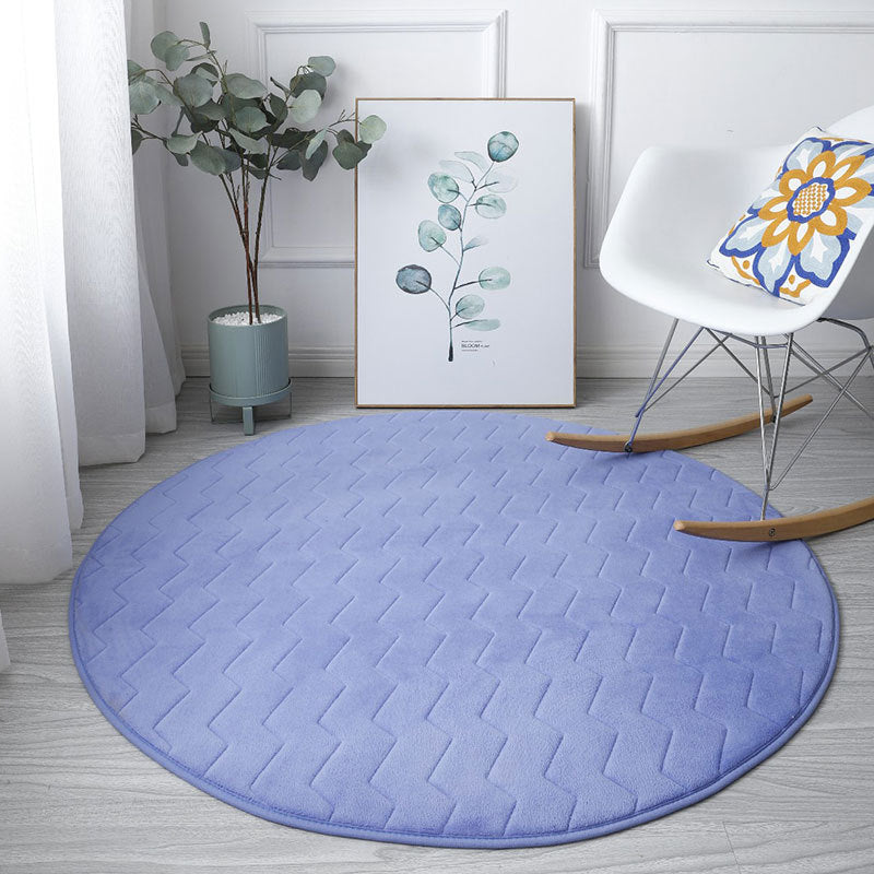 Modern Round Blue Solid Colour Coral Fleece Car... Modern Round Blue Solid Colour Coral Fleece Carpets Anti-Slip Rugs for Entrance Bedside Bedroom Living Room
