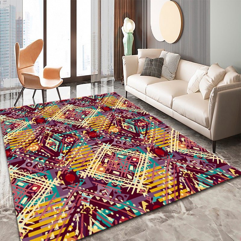 Modern Rug Purple Yellow Moroccan Geometric Tra... Modern Rug Purple Yellow Moroccan Geometric Traditional 3D Pattern Floor Mat for Bedroom Living Room Sofa Office Hall