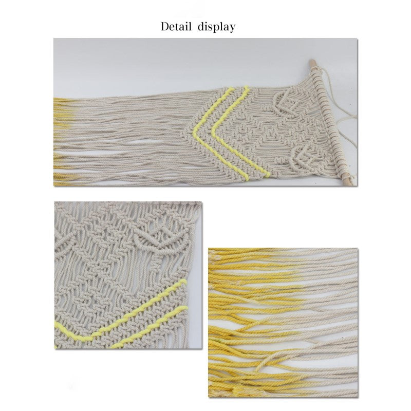 Pretty Beige Hand Woven Cotton Hanging Rugs Tap... Pretty Beige Hand Woven Cotton Hanging Rugs Tapestry With Yellow Tassel Handwoven For Bedroom Living Room Hall Wall Decor Art Tapestries