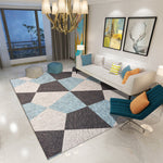 Printed Blue Modern Geometric Patterned Carpet ... Printed Blue Modern Geometric Patterned Carpet Living Room Bedroom Office Hall Floor Mat Rugs