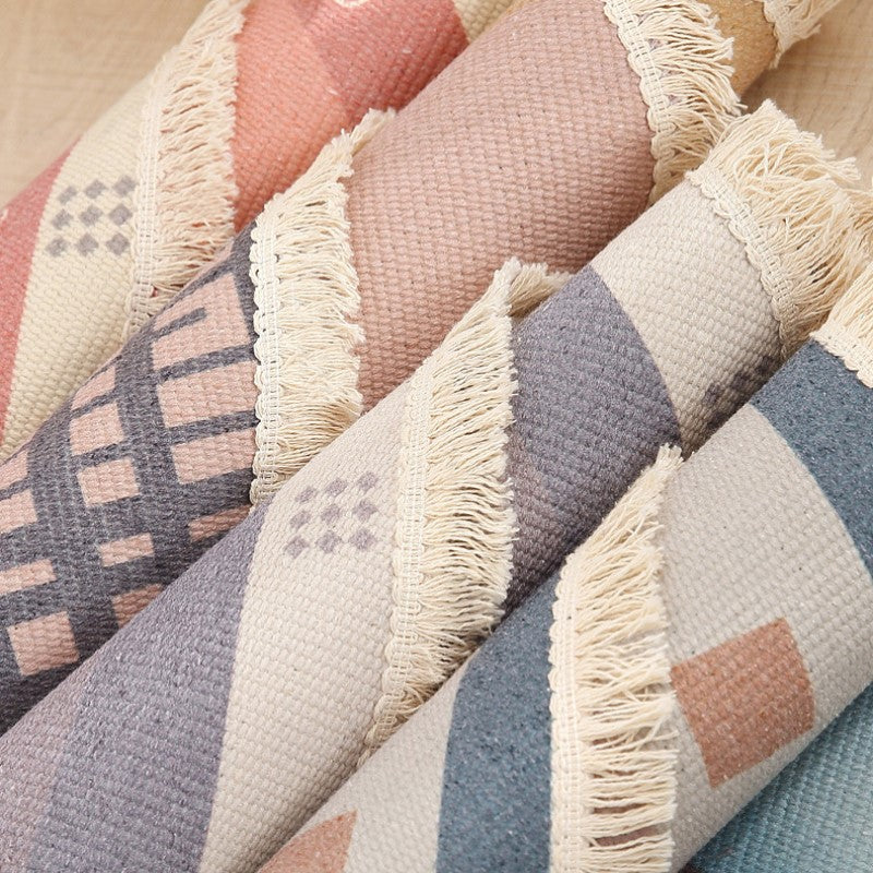 Red Round Cotton linen Area Rug Hand Woven Floo... Red Round Cotton linen Area Rug Hand Woven Floor Carpet Rug for Living Room Bedroom