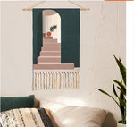 Red Stairs Pattern Cotton Hanging Rugs Tapestry... Red Stairs Pattern Cotton Hanging Rugs Tapestry with Tassel Handwoven for Bedroom Living Room Hall Wall Decor Art Tapestries