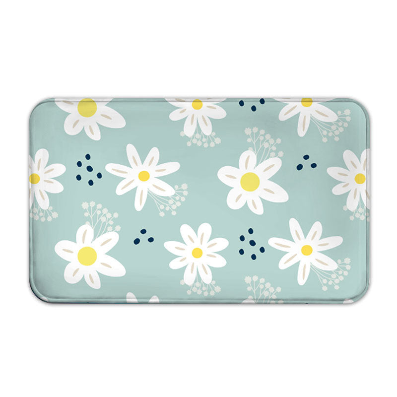 Small White Flowers Modern Flannel Patterned Si... Small White Flowers Modern Flannel Patterned Simplicity Entryway Doormat Rugs Kitchen Bathroom Anti-slip Mats