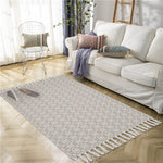 Square Geometric Stitching Cotton and Linen Are... Square Geometric Stitching Cotton and Linen Area Rug with Tassel Handwoven Floor Carpet Rug for Living Room Bedroom