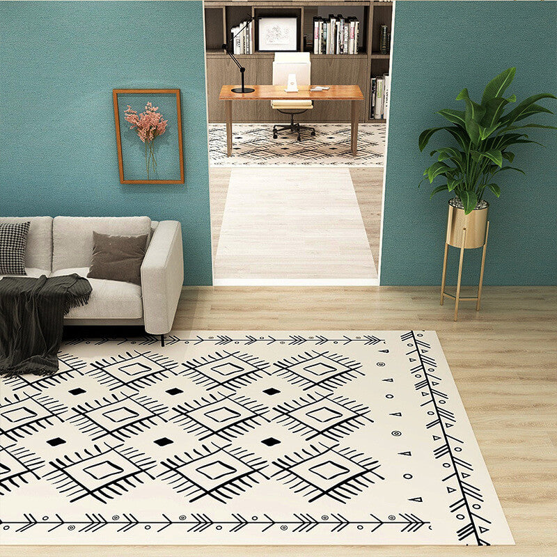 White Retro Moroccan Pattern Faux Cashmere Shag... White Retro Moroccan Pattern Faux Cashmere Shaggy Comfy Area Rugs For Living Room Bedroom Bedside Carpets