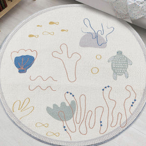 Marine Life Pattern Round Beige Carpet For Nursery Kids Room Area Rugs Marine Life Pattern Round Beige Carpet For Nursery Kids Room Area Rugs