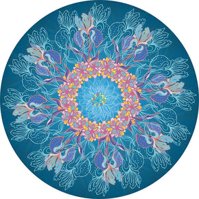 Blue Round Traditional Moroccan Floral 3D Flower Patterned Living Room Bedroom Office Anti-slip Area Rugs Blue Round Traditional Moroccan Floral 3D Flower Patterned Living Room Bedroom Office Anti-slip Area Rugs