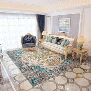 Blue Yellow Patterned Square Polyester Carpets Traditional Retro Floral Area Rugs for Dining Room Living Room Bedroom Office Hall Blue Yellow Patterned Square Polyester Carpets Traditional Retro Floral Area Rugs for Dining Room Living Room Bedroom Office Hall