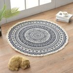 Dark Blue Round Cotton Woven Rug Mandala Boho F... Dark Blue Round Cotton Woven Rug Mandala Boho Floor Mat Living Room Bedroom Tasseled Foot Mat Yoga Cushion