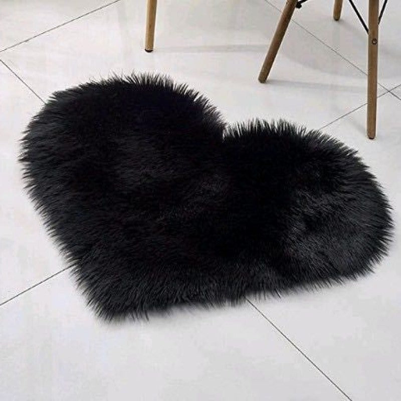 Faux Sheepskin Fur Shaggy Black Heart Shaped Ar... Faux Sheepskin Fur Shaggy Black Heart Shaped Area Plush Rugs For Bedroom Hall Bedroom Bedside Living Room