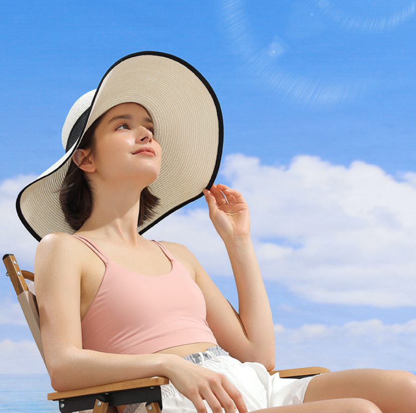 Women Foldable Floppy Wide Brim Straw Sun Hat S... Women Foldable Floppy Wide Brim Straw Sun Hat Summer Beach Hat UV UPF 50+